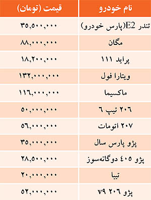 قيمت خودرو‌هاي داخلي در بازار (جدول)