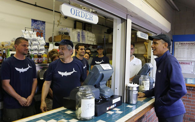 عصر ایران - باراک اوباما در تعطیلات تابستانی خود در ماساچوست برای خرید غذا به یک "فست فود" رفته است.