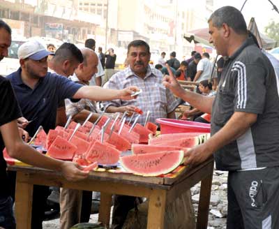 فروش قاچ های هندوانه در خیابان های بغداد (عکس)