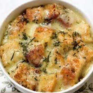 ملاقه در کاسه ها ریخته، روی آن را با تکه های مربعی شکل نان بپوشانید. روی