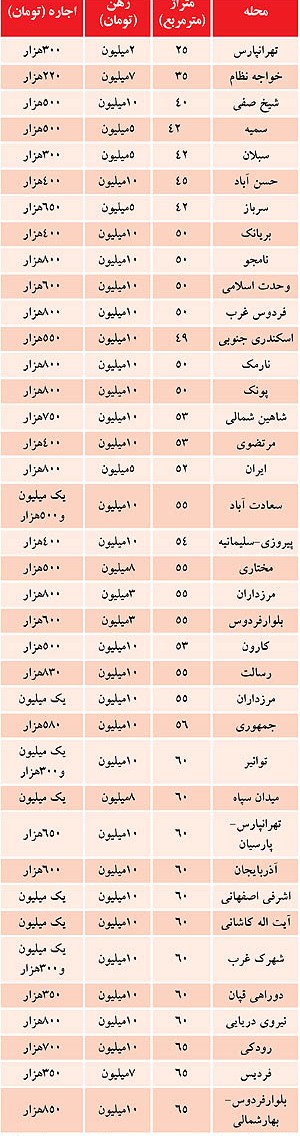 جدیدترین قیمت رهن و اجاره مسکن در تهران (جدول)