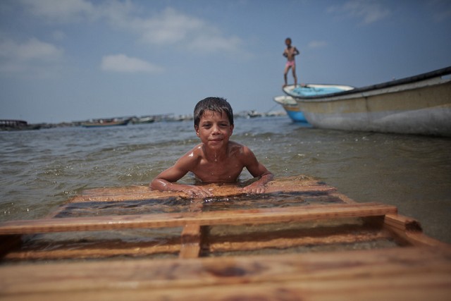 آب تنی کودک 9 ساله  غزه ای در ساحل