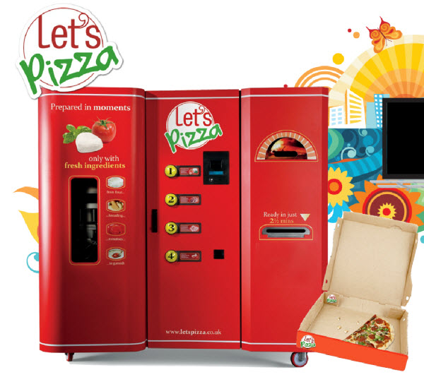 جام کشکول؛یک شرکت اتالیایی به تازگی یک ماشین فروش خودکار پیتزار به نام Let’s Pizza ساخته است، که با سفارش شما و در جلوی دیدگان شما مینی‌پیتزا در عرض دو دقیقه و نیم می‌پزد و تحویلتان می‌دهد.