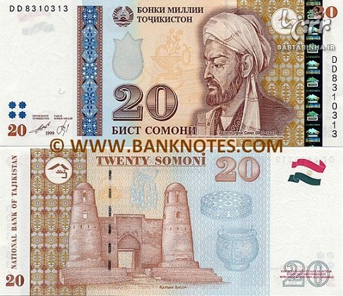 اسکناس های 20 سامانی کشور تاجیکستان مزین به تصویر سعدی شیرازی شاعر بزرگ ایرانی است.