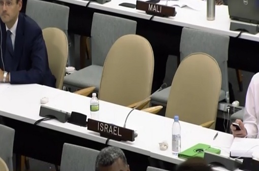 جایگاه هیات اسرائیلی هنگام سخنرانی روحانی خالی بود