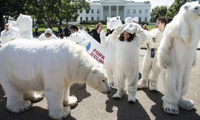 تجمع هواداران محیط زیست در مقابل کاخ سفید در اعتراض به حفاری های نفتی در قطب شمال