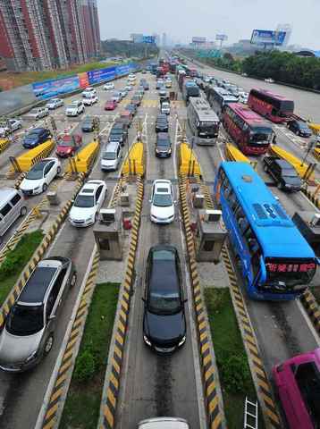 ترافیک سنگین در مقابل یک عوارضی در بزرگراهی در چین