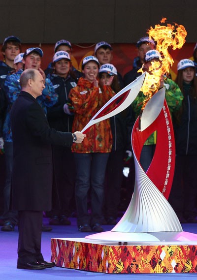 عصر ایران - ولادیمیر پوتین رییس جمهور روسیه روز گذشته با برگزاری آیینی رسمی، مشعل المپیک زمستانی 2014 در شهر سوچی روسیه را در میدان سرخ مسکو روشن کرد.