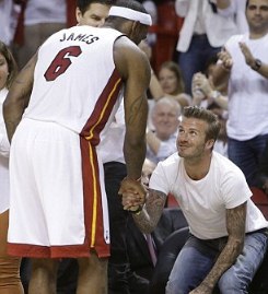 بکام 38ساله هفته گذشته نیز بعد از سفر به میامی برای بازدید از مکان های احتمالی ساخت باشگاه و نهایی کردن مذاکرات با سرمایه گذارها، تماشاچی یکی دیگر از بازی های جیمز شد.