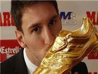 ستاره آرژانتيني بارسلونا براي سومين بار کفش طلاي فوتبال اروپا را کسب کرد و به اين ترتيب به اولين بازيکني تبديل شد که سه بار کفش طلاي فوتبال اروپا را دريافت کرده است.