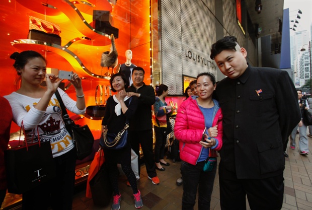 به گزارش عصر ایران به نقل از گاردین ،این مرد که شباهت عجیبی به کیم جونگ اون رهبر جوان کره شمالی دارد با لباس مشابه رهبر کره و با نشان پرچم این کشور در سینه در خیابان های هنگ کنگ راه رفته و توجه مردم و توریست ها رابه خود جلب می کند.