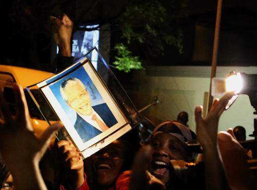 تجمع تعدادی از مردم در ژوهانسبورگ در مقابل منزل ماندلا در غم درگذشت او