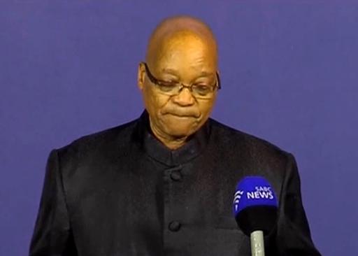 جاکوب زوما رئیس جمهور آفریقای جنوبی با حالت تأثر در حال اعلام خبر درگذشت ماندلا