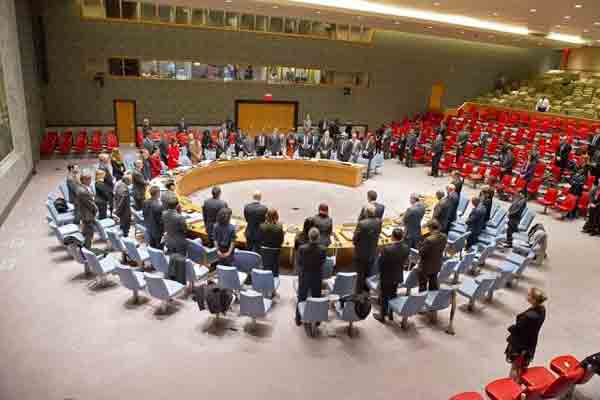 یک دقیقه سکوت در شورای امنیت سازمان ملل متحد در نیویورک در واکنش به درگذشت ماندلا