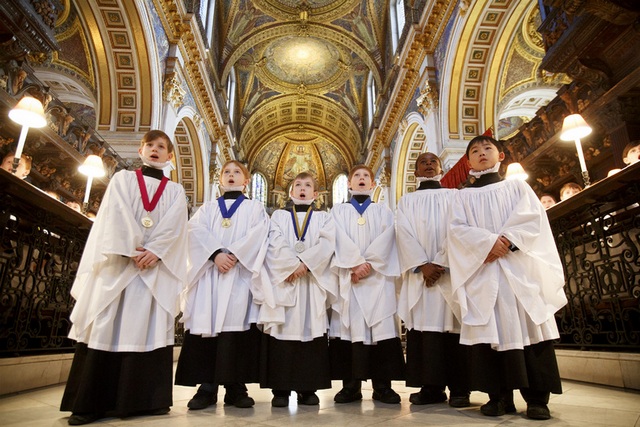 تمرینات گروه آواز کلیسای سنت پال لندن برای مراسم کریسمس