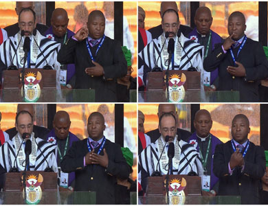 مقامات فدراسیون ناشنوایان آفریقای جنوبی اعلام کرد که مترجم ویژه ناشنوایان در مراسم یادبود ماندلا، ساختگی بود.