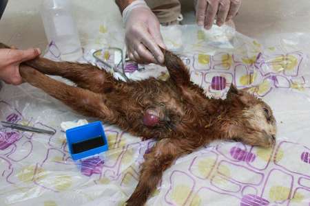 وی اضافه کرد: این بزغاله به کلینک دامپزشکی خصوصی تحت نظارت شبکه دامپزشکی منتقل شد وعمل جراحی روی آن انجام گرفت و هم اکنون این بزغاله زنده است.