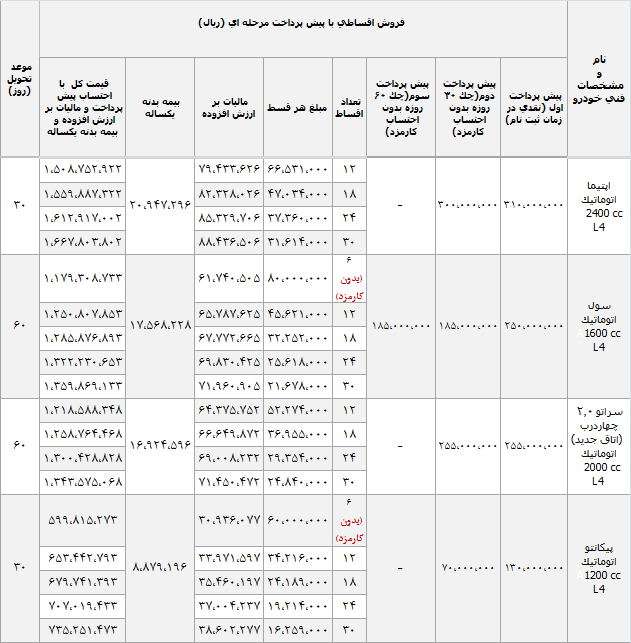 اطلس خودرو نماینده فروش محصولات کیاموتورز در ایران از آغاز فروش اقساطی محصولات این شرکت خبر داد. به گزارش باشگاه خبرنگاران، محصولات اطلس خودرو با شرایط زیر ارائه خواهند شد: