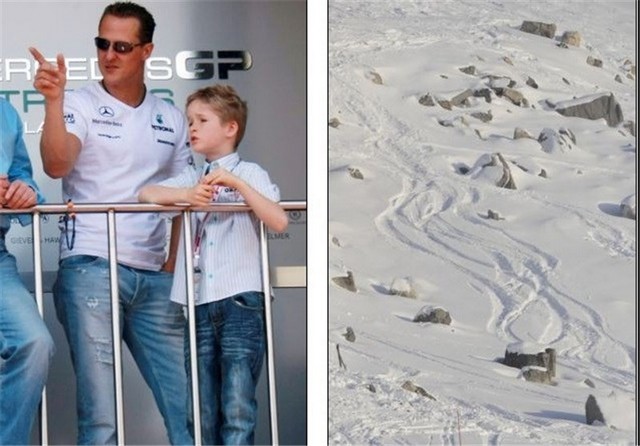 صخرهها برخورد میکند. شدت ضربهای که پس از این برخورد به سر شوماخر وارد