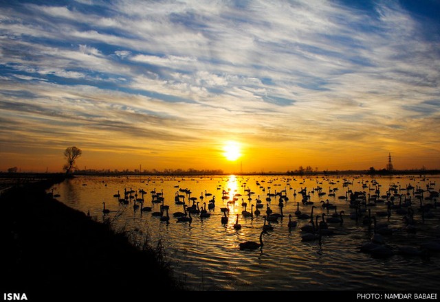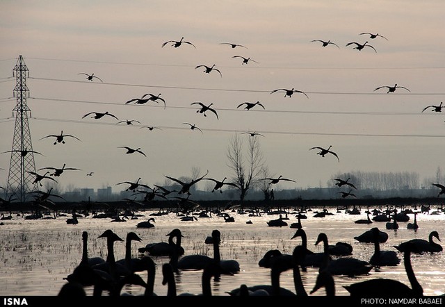 قو های مهاجر در آب‌بندان‌های سرخرود - مازندران (عکس)