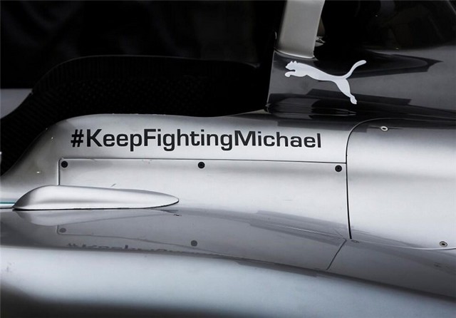 به گزارش تیک،‌ میشاییل شوماخر، قهرمان 7 دوره ‌رقابت‌های اتومبیلرانی فرمول یک جهان پس از حادثه ماه گذشته اسکی در کوه‌های آلپ فرانسه همچنان در کما به سر می‌برد. مرسدس، تیم پیشین این راننده آلمانی برای اینکه حمایت خود را از او نشان دهد روی اتومبیل جدیدش برای فصل 2014 جمله «KeepFightingMichael» به معنی «میشاییل، به مبارزه‌ات ادامه بده» را حک کرده است.