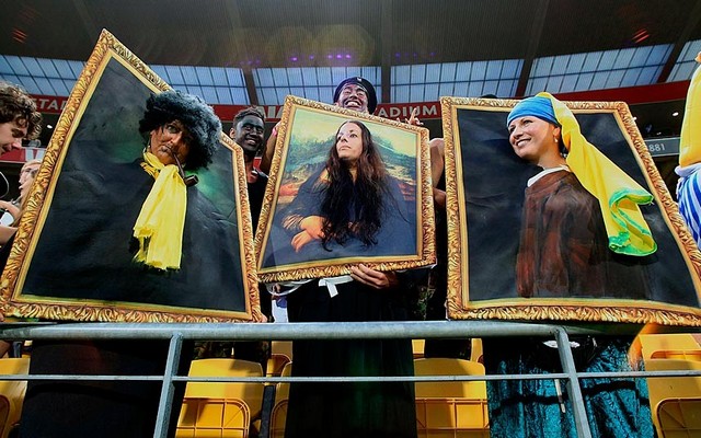 طرفداران و تماشاچیان بازی راگبی در نیوزیلند سر خود را به جای تابلوهای مشهور نقاشان گذاشته اند