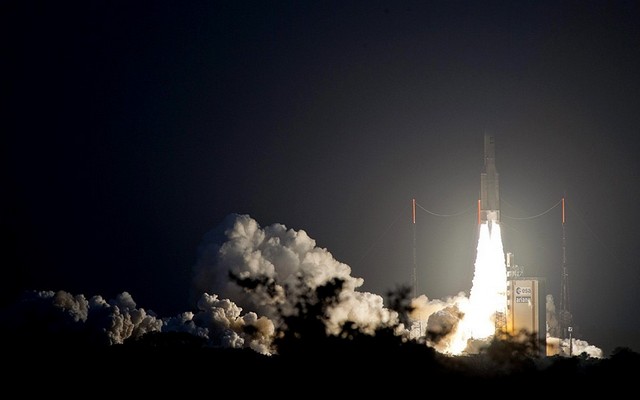 پرتاب راکت آریان 5 به فضا  از پایگاه فضایی " کورو" در گینه فرانسه