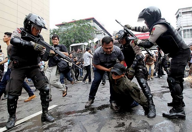 برگزاری مانور مقابله با شورش های انتخاباتی در اندونزی