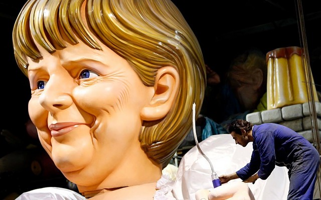 آماده کردن مجسمه بزرگ آنگلا مرکل صدر اعظم آلمان برای کارناوال سالانه سال 2014 شهر نیس فرانسه