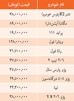 قيمت برخی خودرو‌هاي داخلي در بازار (جدول)