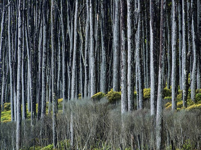 جنگل عظیم از درختان سوزنی برگ "ریمو". درخت ریمو تنها در طبیعت نیوزیلند است