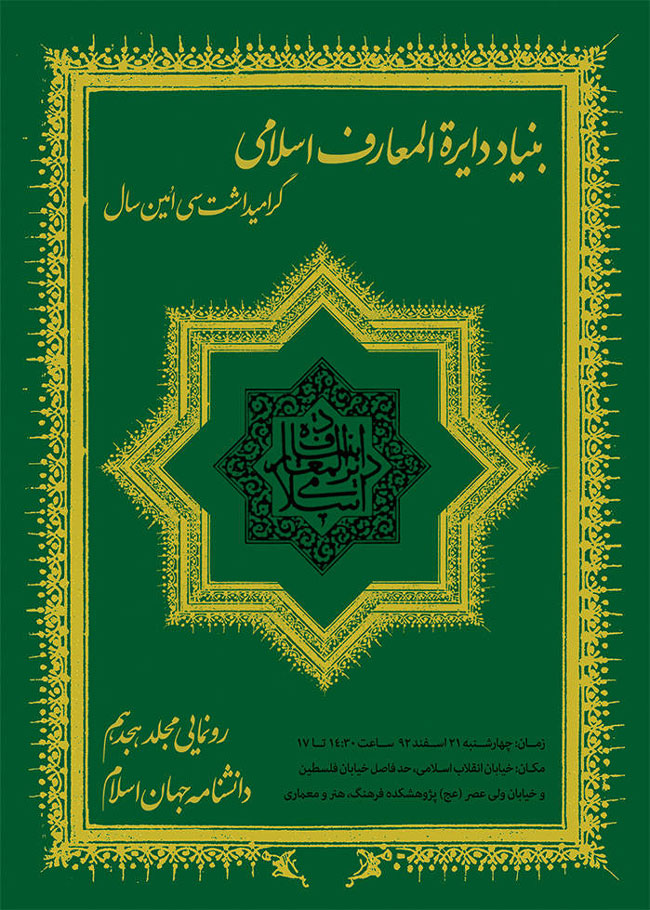 مجلد هجدهم دانشنامه جهان اسلام روز چهارشنبه، 21 اسفند در محل پژوهشگاه فرهنگ، هنر و معماری وابسته به جهاد دانشگاهی با حضور اندیشمندان و پژوهشگران رونمایی خواهد شد.