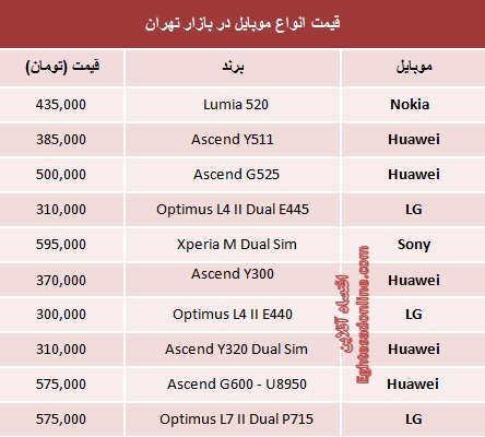 قیمت برندها و مدل های پرطرفدار انواع گوشی های تلفن همراه کمتر از 500 هزار تومانی موجود در بازار به ترتیب میزان محبوبیت به شرح زیر است؛