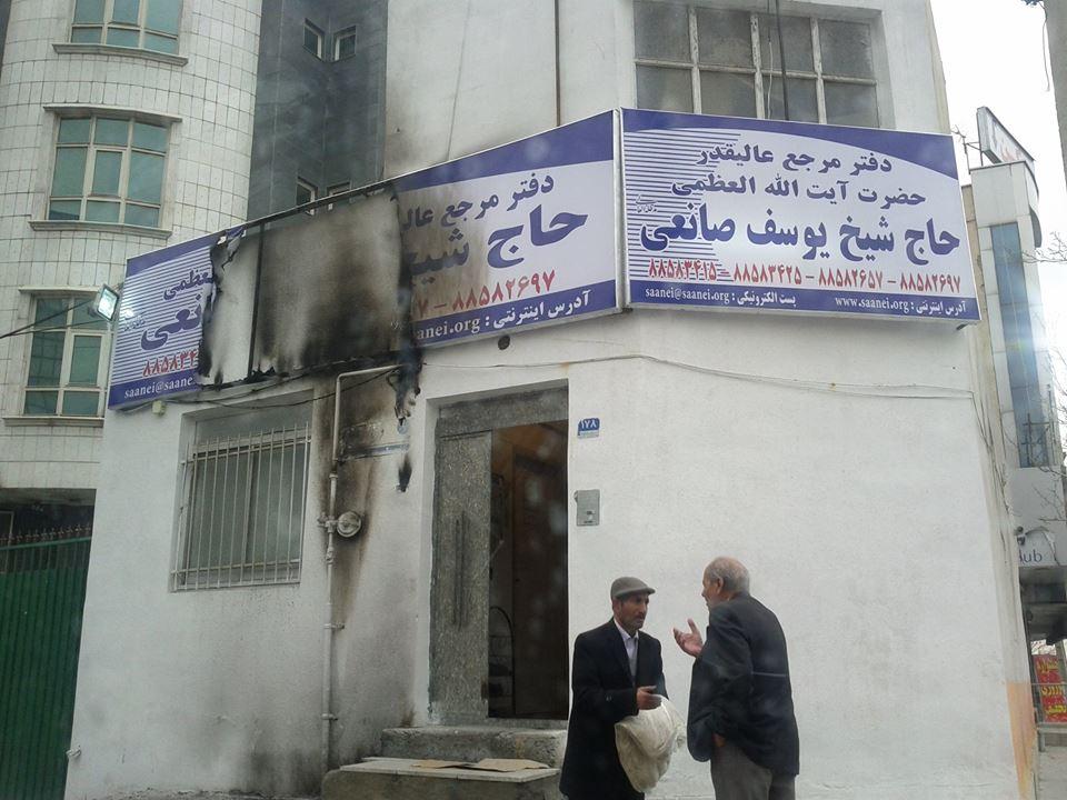 به گزارش خردادنیوز، تابلوی یکی از دفاتر آیت الله صانعی در يكي از مناطق غربي تهران بر اثر حمله افراد ناشناس با مواد آتش‌زا تخریب شد.