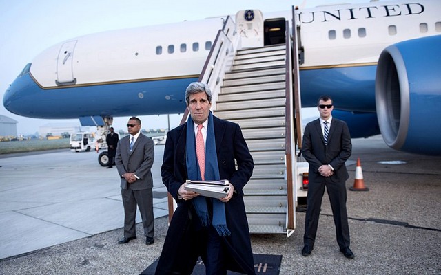 ورود وزیر خارجه آمریکا به فرودگاه لندن