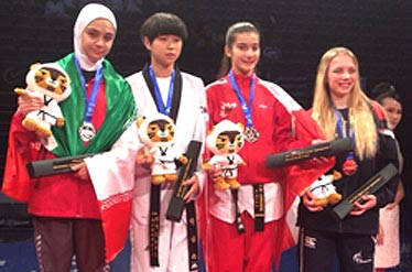 تکواندوکار وزن 44- کیلوگرم بانوان ایران با شکست برابر حریفی از کرهجنوبی در راند طلایی به مدال نقره این وزن دست یافت.