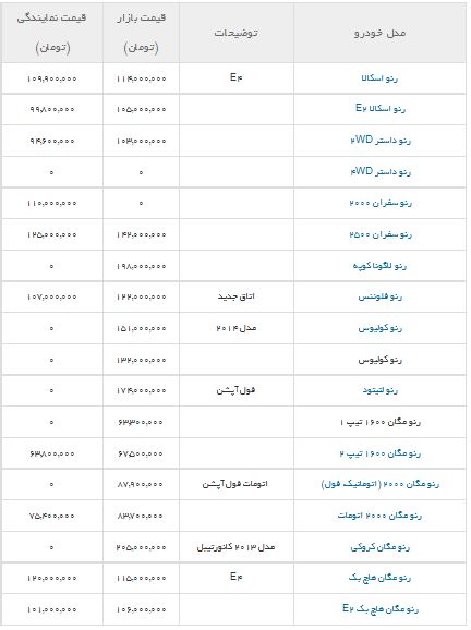 بانک اطلاعات خودرو: اختلاف قیمت 8 میلیونی خودرو مگان در نمایندگی و بازار از بارزترین نکات جدول ذیل است که علت اصلی آن کمبود عرضه این محصول از سوی شرکت رنو می باشد.