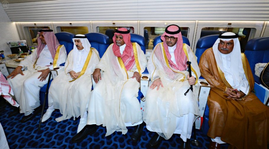 هیات همراه پادشاه عربستان سعودی در ملاقات عبدالفتاح سیسی رئیس جمهور مصر با ملک عبدالله در محل هواپیمای حامل وی