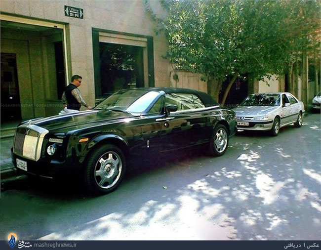 تصویر زیر، یک دستگاه خودروی لوکس مدل « شبح سیاه Black Phantom» ساخت شرکت انگلیسی رولز رویس را که قیمتی بیش از یک میلیارد تومان دارد، نشان میدهد که در خیابان های تهران است.