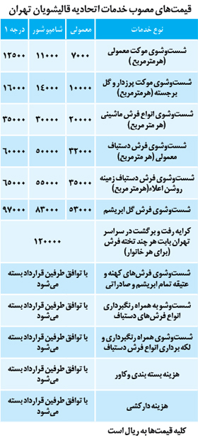 بازار داغ قالیشویی (+جدول قیمت)