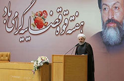 روحانی گفت : در حکومت اسلامی به جای قدرت ؛ عدل و انصاف دستگاه قضا می نشیند و حاکم ، قدرت سیاسی ،نظامی، مالی و هیچ یک از آنها نیست بلکه حاکم در مسیر حکم خدا ،عدل ،داد و قانون حرکت می کند و قاضی در اتاق قضاوت ، وجدان و خدا را می بیند و حکم صادر می کند .