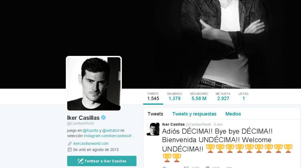 ایکر کاسیاس، دروازه بان اسطوره ای رئال، دقایقی پس از قهرمانی یازدهم این تیم در چمپیونزلیگ در توئیتر خود نوشت:" خداحافظ دسیما و خوش آمدی اوندسیما"