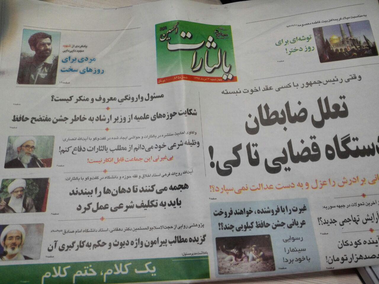 هفته نامه توقیف شده "یالثارات الحسین" امروز چهارشنبه منتشر شد.