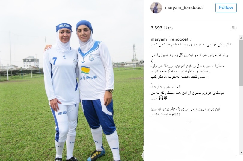 «خانم نيكى كريمى عزيز در روزى كه باهم هم تيمى شديم و البته يه پاس هم دادم و ايشون گل زد به همين راحتى.