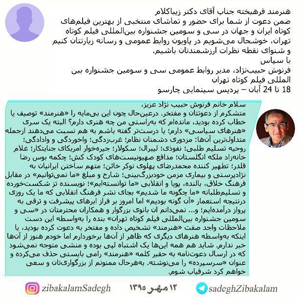 پاسخ زییاکلام به یک دعوتنامه