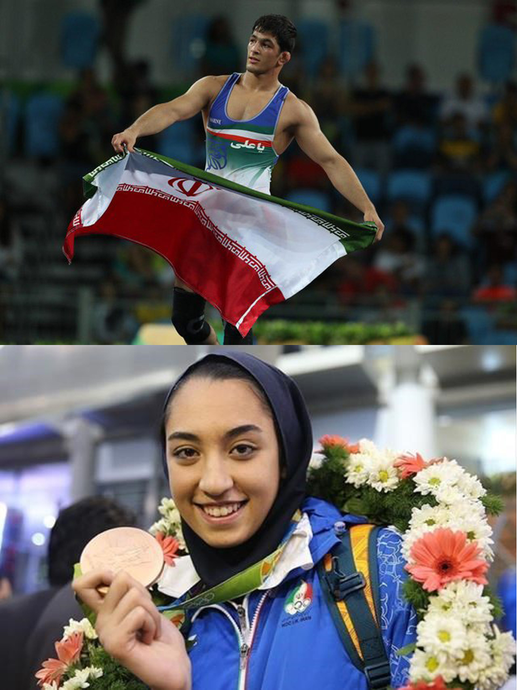 حسن یزدانی، طلایی کشتی آزاد ایران در المپیک ریو و کیمیا علیزاده اولین بانوی مدالآور ایران در ادوار المپیک به عنوان برترین ورزشکاران سال ۹۵ ایران انتخاب شدند.