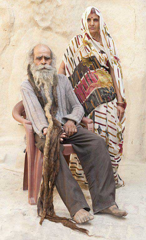 مرد 65 ساله هندی بیش از 37 سال است که حمام نرفته و موهایی به طول 2 متر دارد!