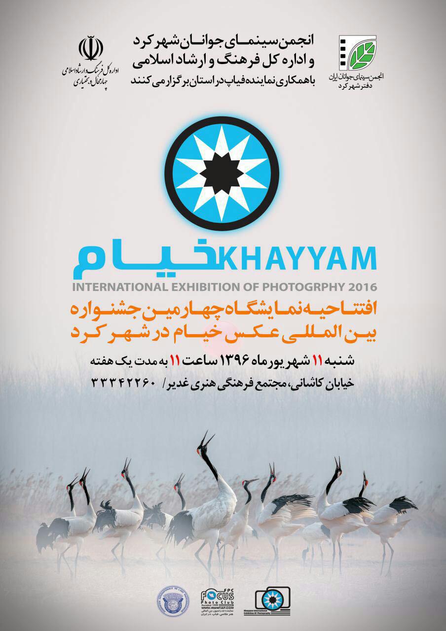به گزارش روابط عمومی دفتر فیاپ در ایران، نمایشگاه عکس های برگزیده چهارمین دوره جشنواره بین المللی عکس خیام به همت اداره کل فرهنگ و ارشاد اسلامی استان چهارمحال و بختیاری، انجمن سینمای جوانان شهرکرد و نمایندگی فیاپ (فدراسیون بین المللی هنر عکاسی) شنبه ١١ شهریور در مجتمع فرهنگی هنری غدیر شهرکرد آغاز به کار کرد.