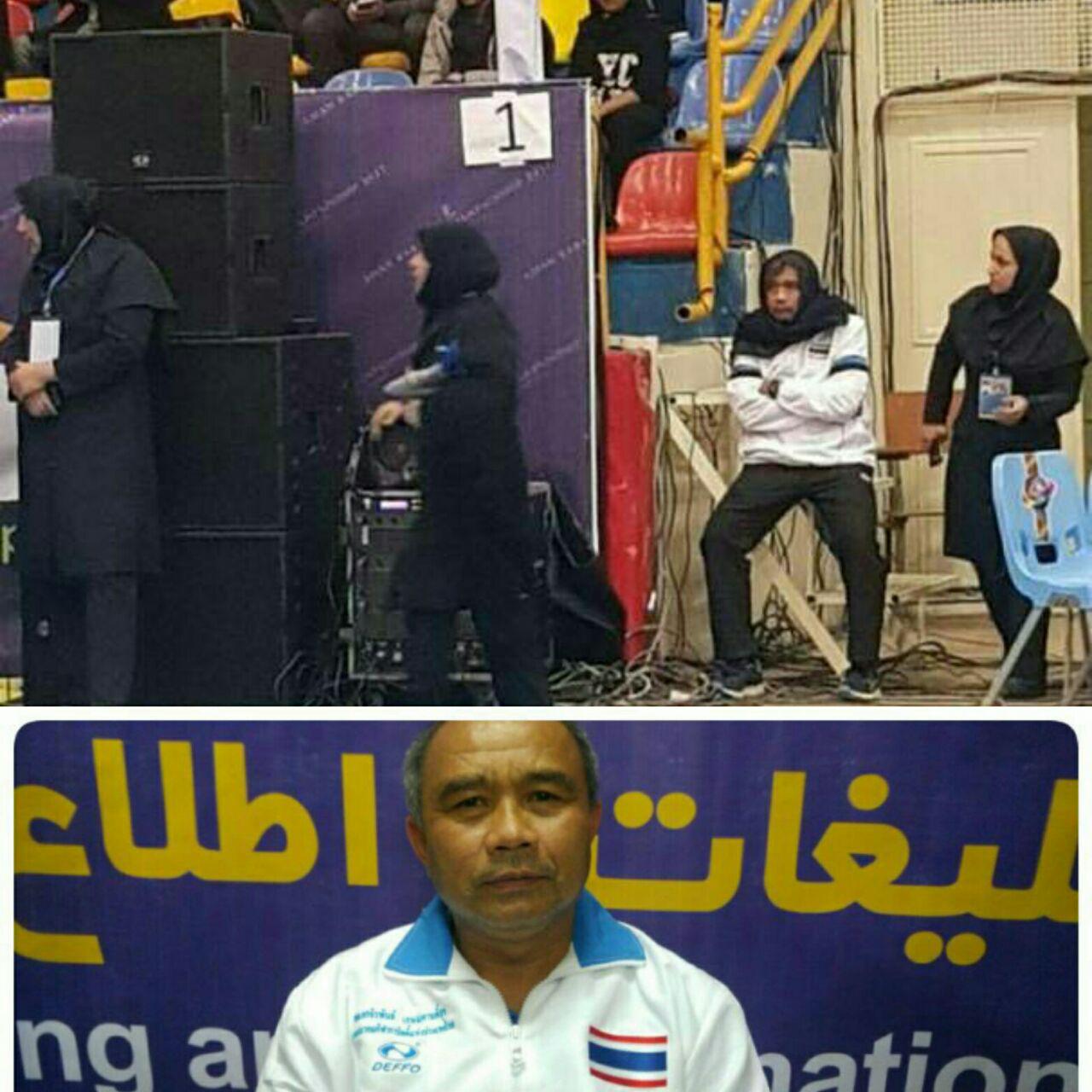 حضور مربی مرد تیم زنان تایلند درورزشگاه با روسری مایه تاسف برای مسئولین ورزش کشورم میباشد