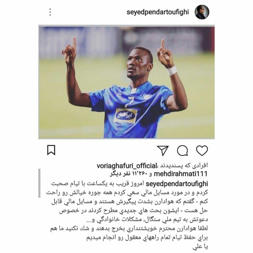 پست اینستاگرامی معاون استقلال درباره مامه تیام